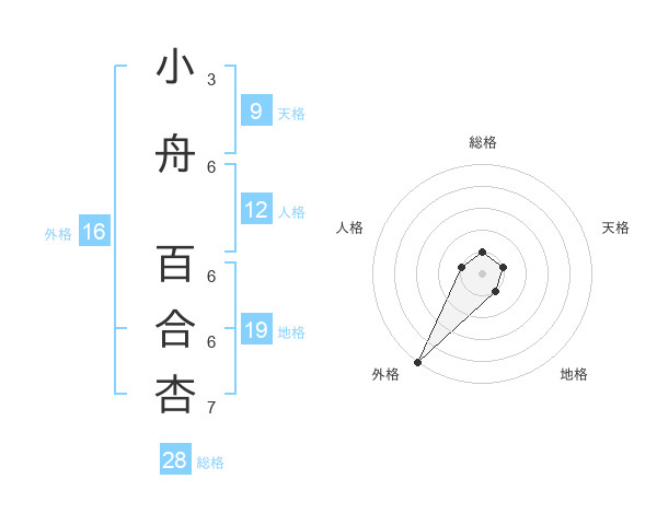 小舟 百合杏さんを姓名の画数から五運を鑑定