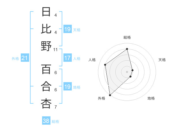 日比野 百合杏さんの総格は38画の4点!