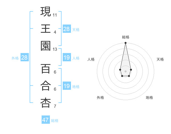 現王園 百合杏さんを姓名の画数から五運を鑑定