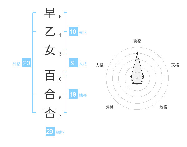 早乙女 百合杏さんの総格は29画の4点!