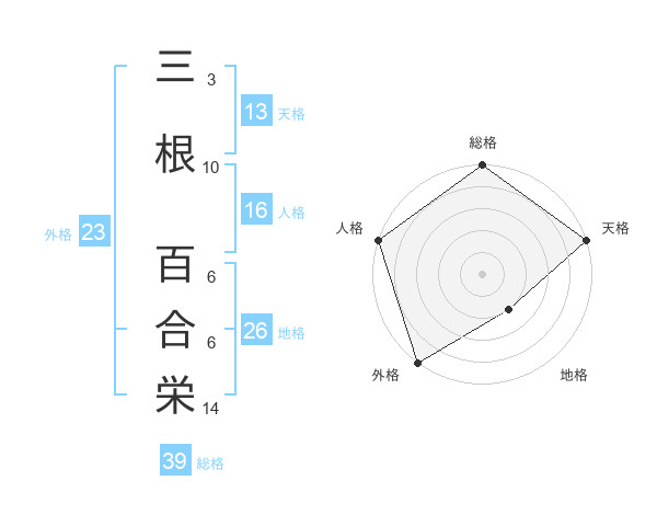三根 百合栄さんを姓名の画数から五運を鑑定