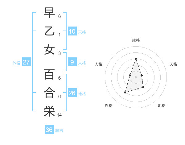 早乙女 百合栄さんを姓名の画数から五運を鑑定