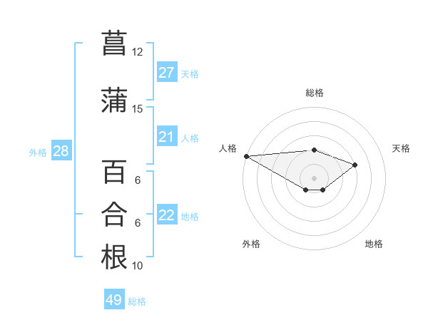 菖蒲 百合根さんを姓名の画数から五運を鑑定