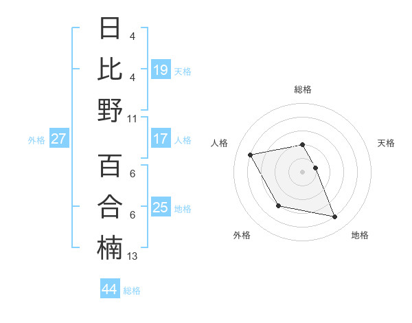 日比野 百合楠さんを姓名の画数から五運を鑑定
