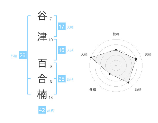 谷津 百合楠さんを姓名の画数から五運を鑑定