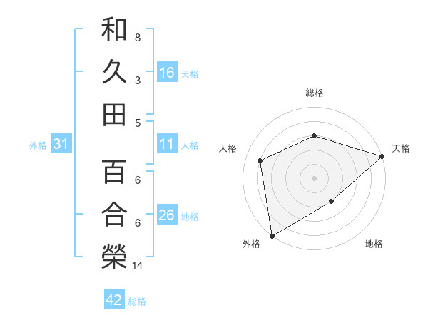 和久田 百合榮さんを姓名の画数から五運を鑑定