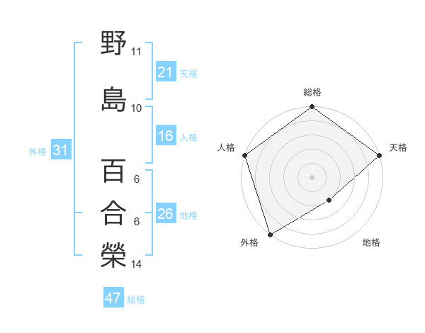 野島 百合榮さんを姓名の画数から五運を鑑定