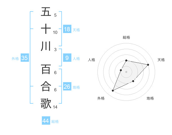 五十川 百合歌さんの外格は35画の4点!