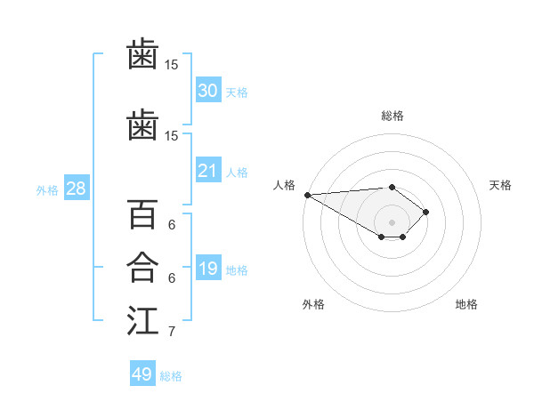 歯歯 百合江さんを姓名の画数から五運を鑑定