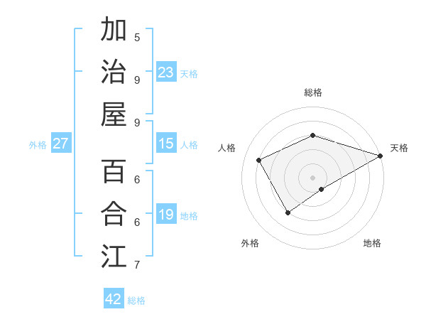 加治屋 百合江さんを姓名の画数から五運を鑑定