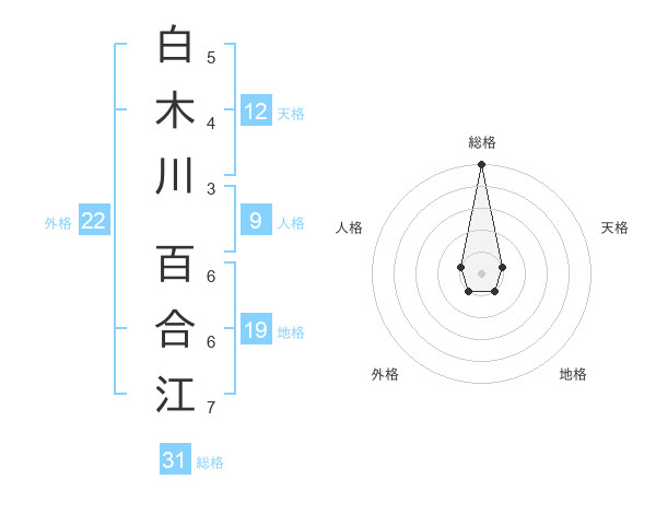 白木川 百合江さんを姓名の画数から五運を鑑定
