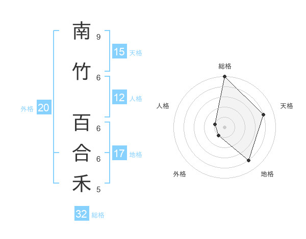 南竹 百合禾さんの総格は32画の5点!
