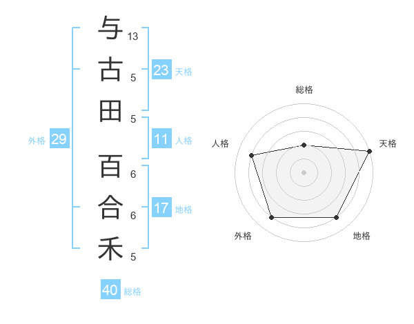 与古田 百合禾さんを姓名の画数から五運を鑑定