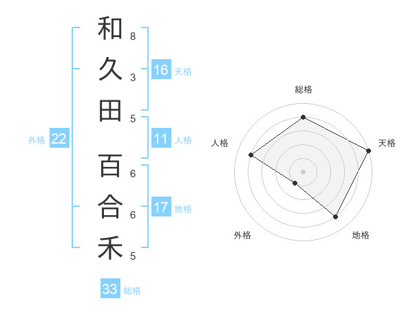 和久田 百合禾さんを姓名の画数から五運を鑑定