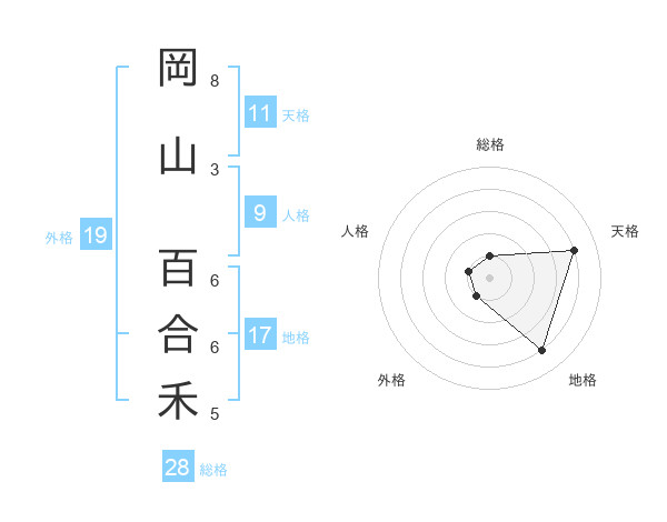 岡山 百合禾さんを姓名の画数から五運を鑑定