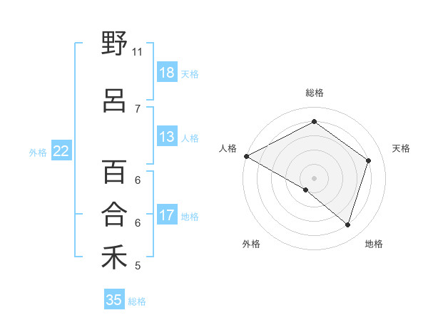 野呂 百合禾さんの天格は18画の4点!