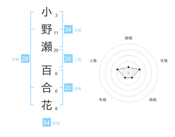 小野瀬 百合花さんを姓名の画数から五運を鑑定