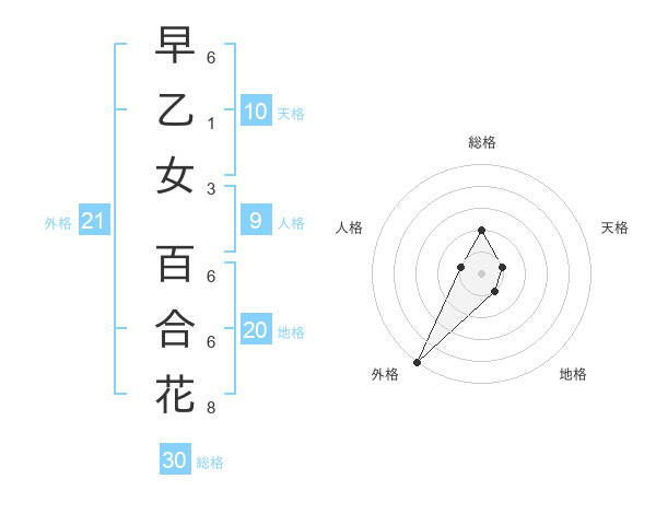 早乙女 百合花さんを姓名の画数から五運を鑑定