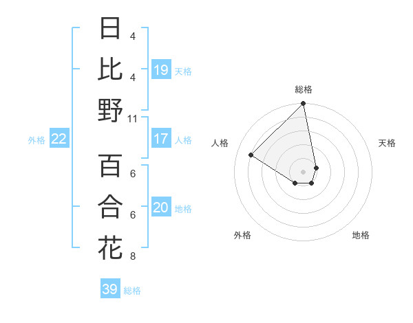 日比野 百合花さんの外格は22画の1点!
