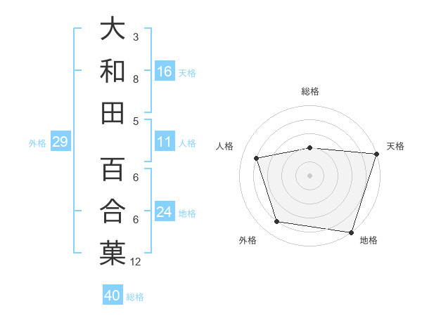 大和田 百合菓さんを姓名の画数から五運を鑑定