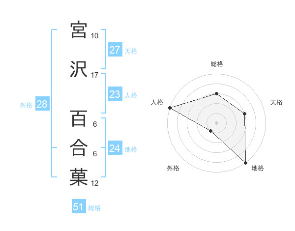 宮沢 百合菓さんの総格は51画の3点!