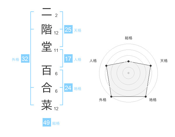 二階堂 百合菜さんを姓名の画数から五運を鑑定