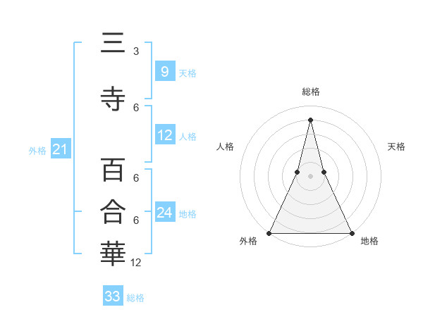 三寺 百合華さんの総格は33画の4点!