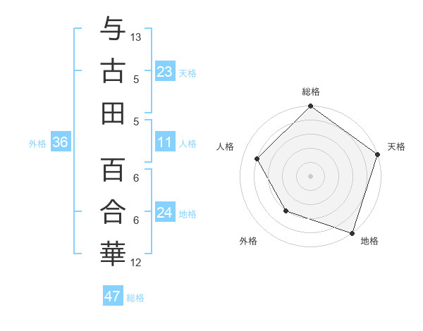 与古田 百合華さんの総格は47画の5点!