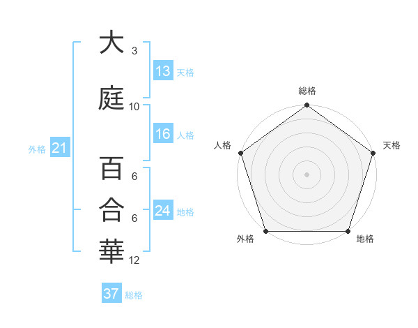 大庭 百合華さんの総格は37画の5点!