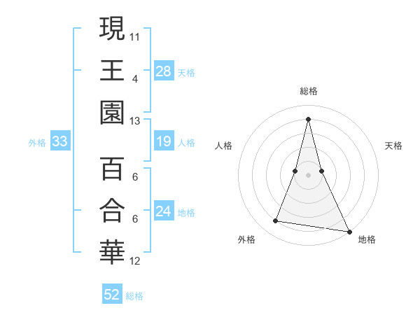 現王園 百合華さんを姓名の画数から五運を鑑定