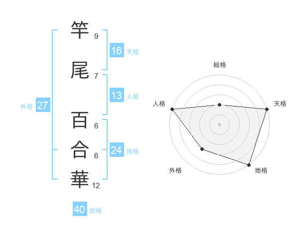 竿尾 百合華さんの天格は16画の5点!