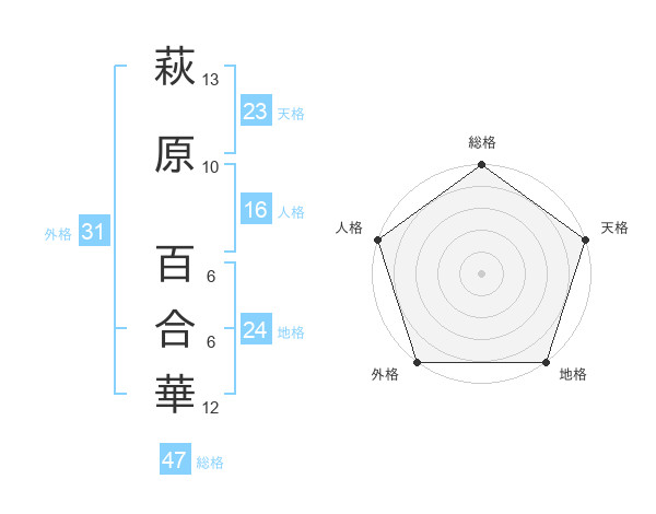萩原 百合華さんの総格は47画の5点!