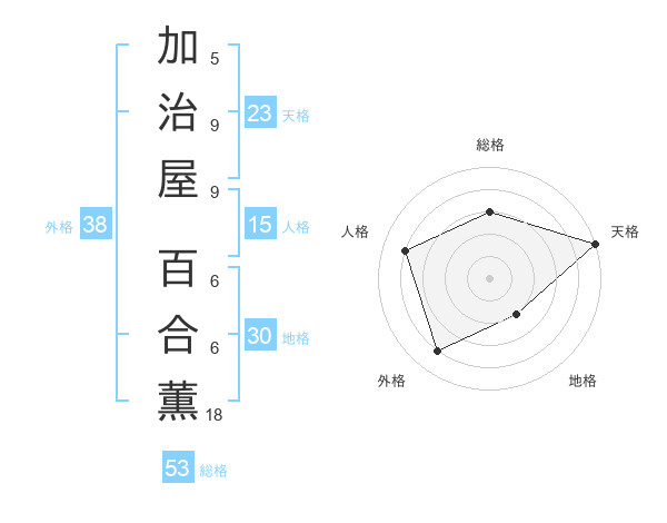 加治屋 百合薫さんを姓名の画数から五運を鑑定