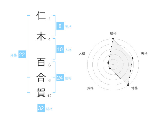 仁木 百合賀さんの総格は32画の5点
