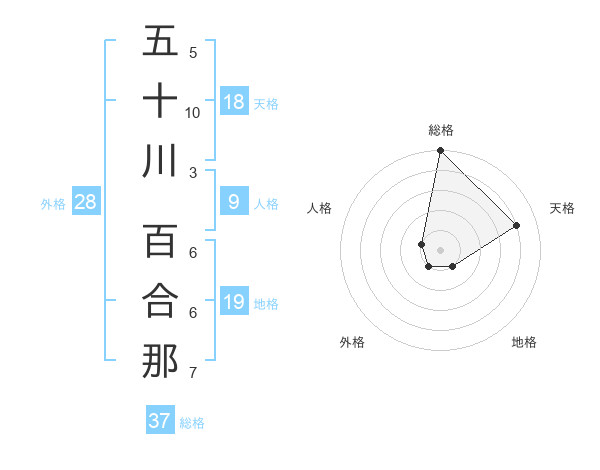 五十川 百合那さんを姓名の画数から五運を鑑定