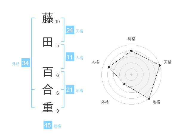 藤田 百合重さんを姓名の画数から五運を鑑定