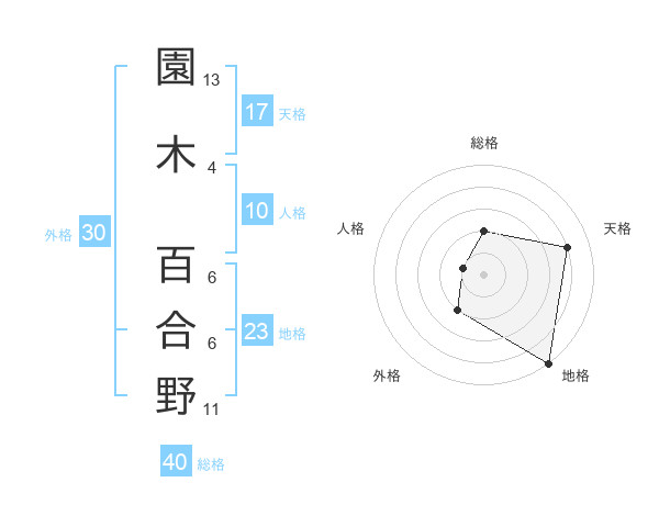 園木 百合野さんの天格は17画の4点!