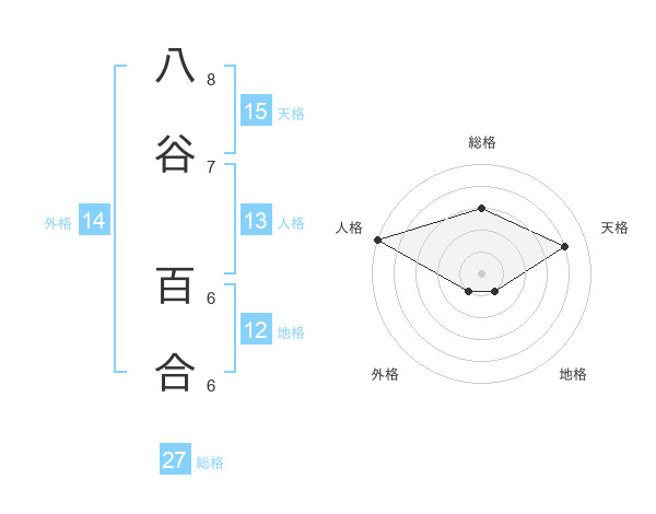 八谷 百合さんの総格は27画の3点!