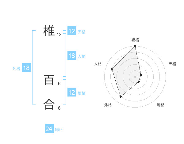 椎 百合さんの天格は12画の1点!