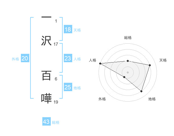 一沢 百嘩さんを姓名の画数から五運を鑑定