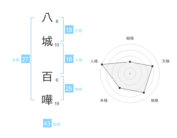 八城 百嘩さんを姓名の画数から五運を鑑定