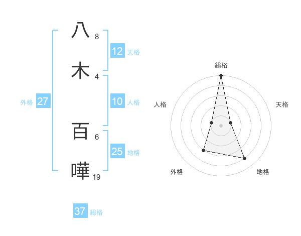 八木 百嘩さんを姓名の画数から五運を鑑定
