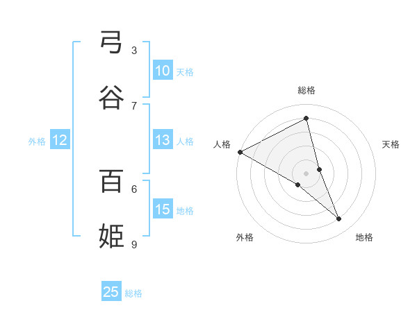 弓谷 百姫さんを姓名の画数から五運を鑑定