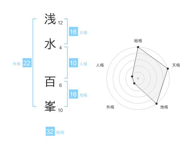 浅水 百峯さんの天格は16画の5点!