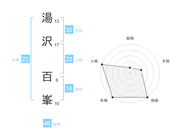 湯沢 百峯さんの外格は23画の5点!
