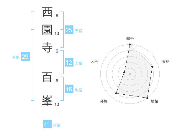 西園寺 百峯さんの総格は41画の5点!