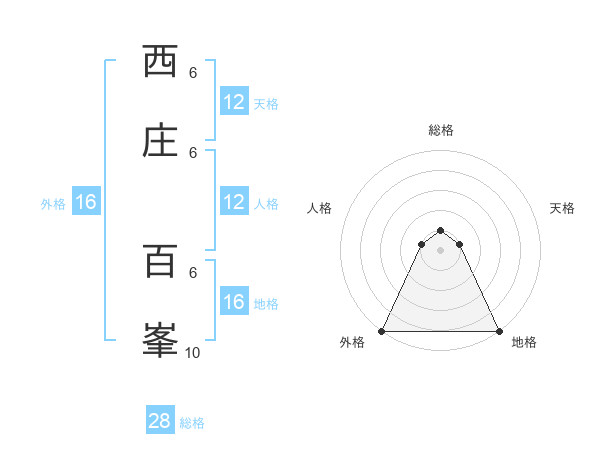 西庄 百峯さんの総格は28画の1点!
