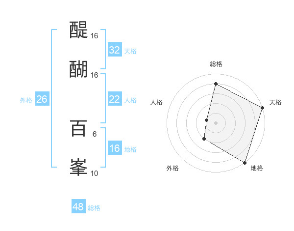 醍醐 百峯さんの天格は32画の5点!