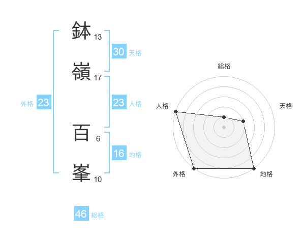 鉢嶺 百峯さんの外格は23画の5点!