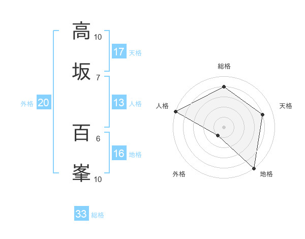 高坂 百峯さんの総格は33画の4点!